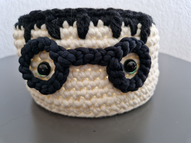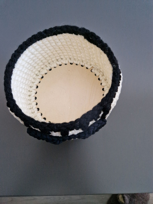 Petit panier réalisé au crochet avec soin, avec des couleurs douces et naturelles.
