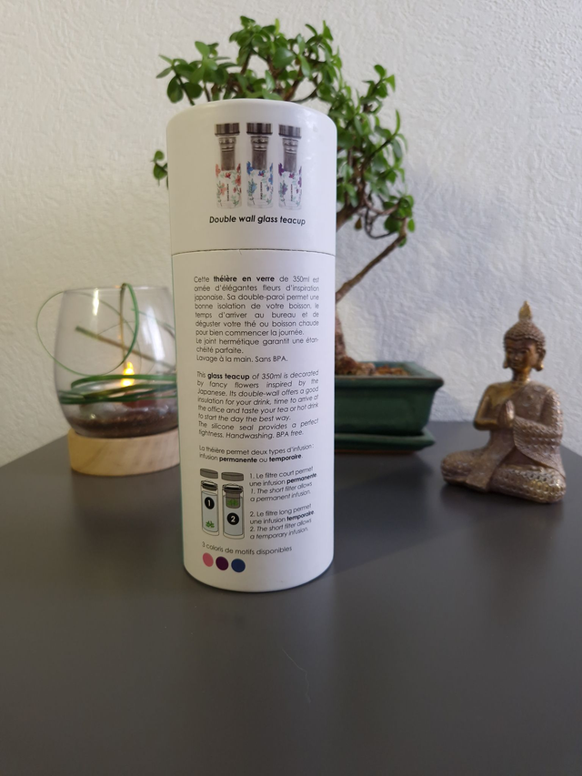 Théière isotherme en inox 350 ml, gardant votre boisson chaude 5 h ou froide 7 h. Étanche et ergonomique, idéale en déplacement. Inclut 2 filtres : un panier pour infusion temporaire et un court pour infusion permanente. Bouchon à vis. Lavage à la main.