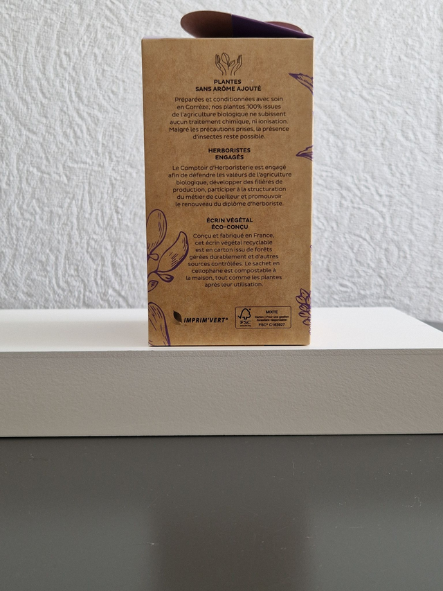 Mettre 1 cuillère à café (2g) par tasse. Verser de l’eau frémissante (85-95°C) sur la plante ou le mélange et laisser infuser 5 à 7 mn.