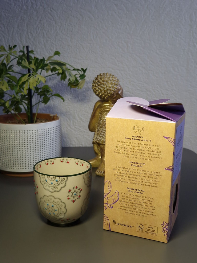 Mettre 1 cuillère à café (2g) par tasse. Verser de l’eau frémissante (85-95°C) sur la plante ou le mélange et laisser infuser 5 à 7 mn.