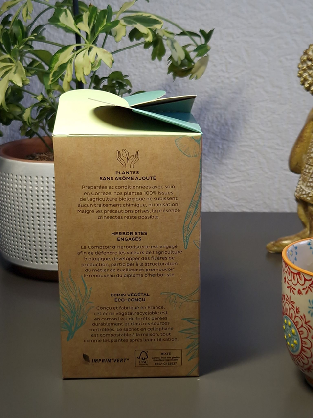 Utilisation : Infuser 1 cuillère à café (2 g) par tasse dans de l’eau frémissante (85-95°C) pendant 5 à 7 minutes.